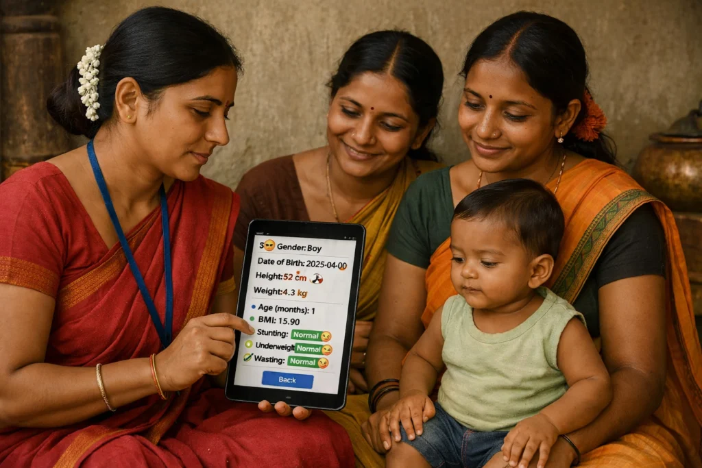 ASHA and Anganwadi workers can use the Poshan Calculator during home visits and village camps without needing technical skills or complicated training.